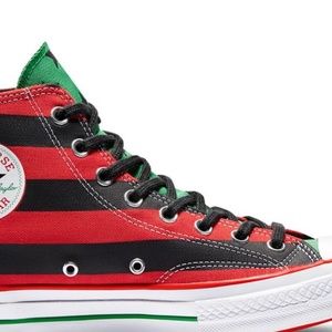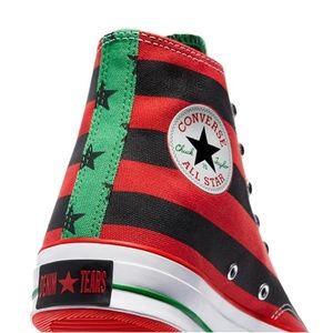 Converse sneakers have always been a vehicle for others to tell a story, reflect their personal identity. Tremaine Emory (Denim Tears), presents a powerful provocation to young Black men & women through his latest collaboration. The African American flag is an artistic evolution of Marcus Garvey’s red, black and green Pan-African flag first ratified in 1920 – and was intended to be not only artwork for artwork’s sake, but moreover a flag for a new form and a new truth.