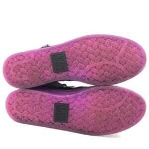 The Joe Freshgoods x Converse Pro Leather High ‘Black Purple’ channels the Chicago-based designer’s vision of ‘70s disco culture in the Windy City. Made famous by Julius ‘Dr. J’ Erving, the retro hoops shoe features a monochrome black upper constructed from a blend of suede and velvet. Unique details include stitched floral designs, removable JFG corduroy patches and patent leather Star Chevron branding. The sneaker’s retro-glam aesthetic is amplified via a glitter-infused purple rubber cupsole.