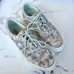 Converse x John Elliott Skid Grip OX sneakers in 'French Oak' print. Features a textured marble-like canvas upper, lace-up style, and cushioned sole. Limited edition collab release. In good condition, some signs of wear. Men's size 9.5.