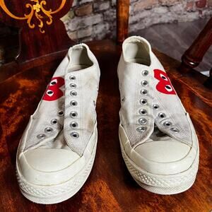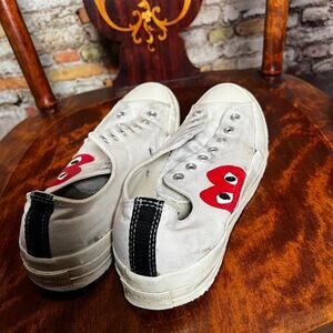 Wear your heart on your shoes with the Converse x Comme des Garçons PLAY Chuck 70 sneaker. This street-ready style features the premium Chuck details you know and love, paired with a whimsical heart-and-eyes graphic peeking just above the sole. Eye-catching is an understatement.