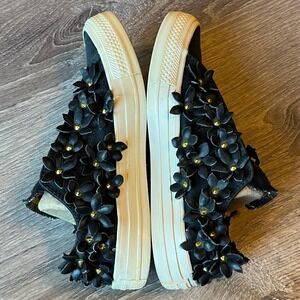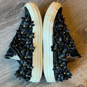 Converse x PatBO All Star Sneakers Blue Leather Flowers Studs Womens 5.5 EU 36
