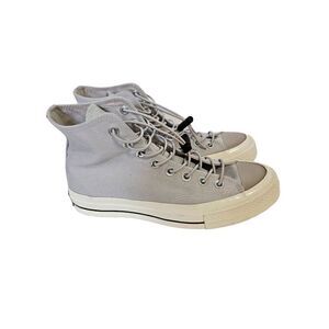 Stylish high-top sneakers. Cream canvas upper. Perfect for casual outings.