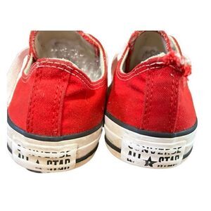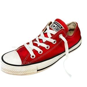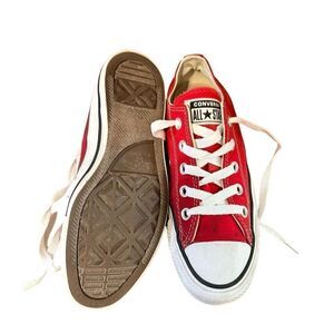 Chuck’s in red, padded insole, toe cap, lace up, signature logo
