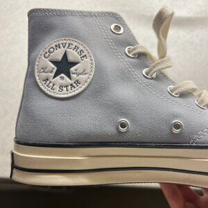 Barely ever worn (maybe 1-2 times)! Light blue vintage canvas high-top Converse.