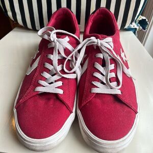 Very good condition. Converse Men’s All-Stars Red Canvas. Size 11. Please see all photos. There is a cut on the rim of the left shoe. Not really noticeable.