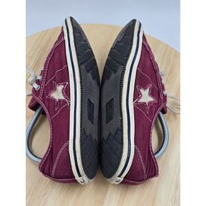 Pre-Owned Converse One-Star Silver Plum Low Canvas Sneakers Women's Size 7. Flaws- wear in bottom right back heel in lining an top edge- wear on bottom back soles- some wear on edges of soles-some wear on laces see pictures above.