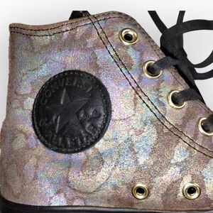 Converse Womens Sz 7 Chuck Taylor AllStar Black Wedge Irridescent High Tops Y2K
