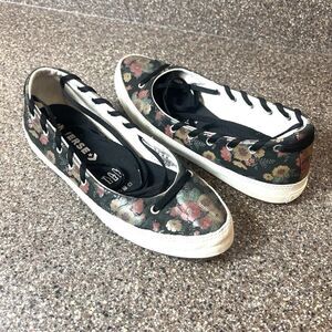 Converse Women's Size 7 Comfort Casual Floral Leather Tie Up Flat Shoes Pointed Toe