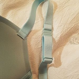 Brand new convertable t-shirt bra. Can be worn 7 wasy. Comes with 3 loops for straps (see pic 5). Bands are double for extra strapless hold. Straps also unclip (pic #6). Lightly padded
