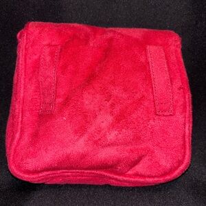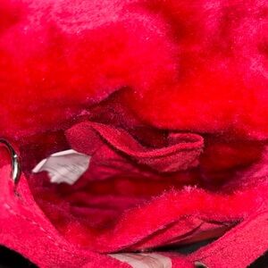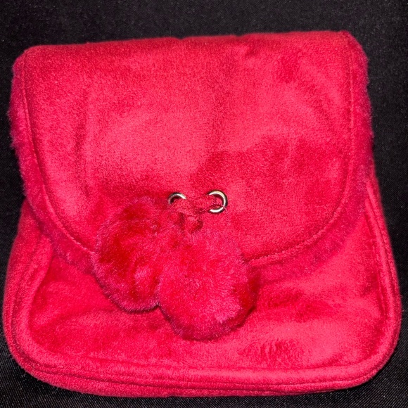 Stylish red faux fur shoulder bag with pom-pom accents. Perfect for adding a pop of color to any outfit. Adjustable strap. Measurements are in the photos. Price is firm.