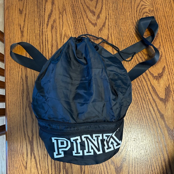 Stylish black backpack with bold PINK lettering- converts to a belt bag. Perfect for everyday use.