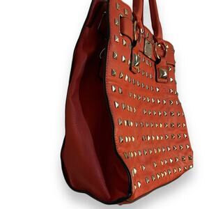 Convertible Top Handle Shoulder Bag Women's Red Gold Studded Faux Leather Tote