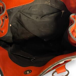 Women's large red convertible bag. Good overall condition. This bag has obvious signs of wear. Some of the studs are missing and there is some wear on the inside of the bag. This has been pictured. There is no brand or materials information.