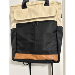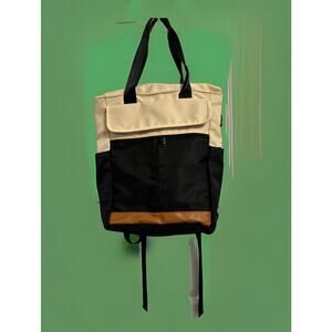 Convertible Tote, Daypack Laptop Backpack Wide Open School/Work Black/Cream Mint