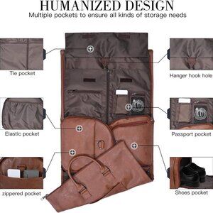 SUPER MULTI-FUNCTION BAG: The function of hanging clothes bag + various internal pockets + large-capacity travel bag, On the side of the leather garment bag, there is a zip pocket accessible for electronics or travel materials.
