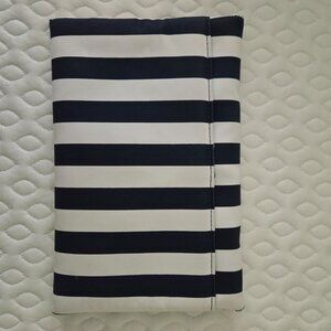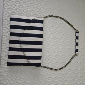 Has attached strap with snap closure. Some little stains but overall in good shape. Still pretty for events or outings.