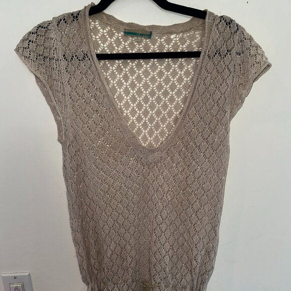 Convoy Beige Crochet Knit Tunic Top | Boho Beach Cover-Up | Size M