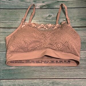 Chic lace bandeau with adjustable straps. Offers comfort and style.