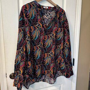 Coofandy | 3XL Colorful Multicolor Paisley Long Sleeve Top Cotton Hemp Roll Tab