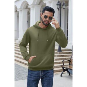 Coofandy Men Army Green Pullover Fleece Hooded Sweatshirt with Kanga Pocket