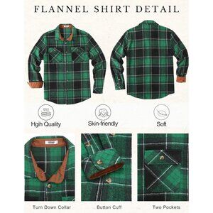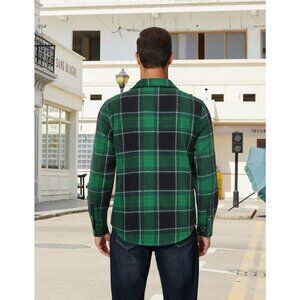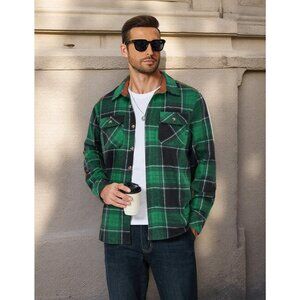 Coofandy Men Black Green Flannel Plaid Button Down Jacket Shirt with Pockets