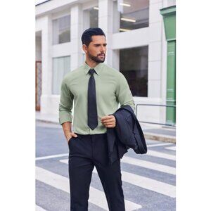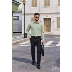 Coofandy Men Light Green Long Sleeve Formal Fit Business Button Down Shirts
