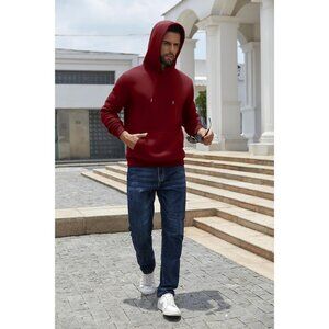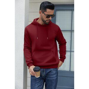 Coofandy Men Wine Red Pullover Fleece Hooded Sweatshirt with Kanga Pocket