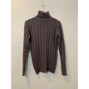 Coofandy Men's Brown Cable Knit Turtleneck Sweater Preppy Slim size Medium. Sweater is in great preowned condition.