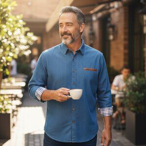 Coofandy Men's Button-up Shirt Size XL Chambray Blue Check Contrast Cuff