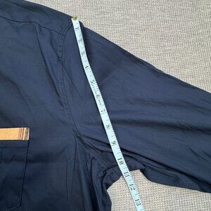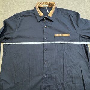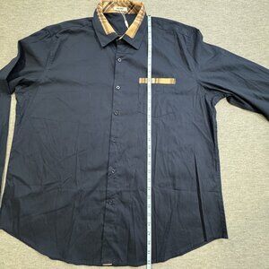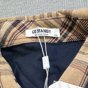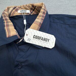 Coofandy Mens Size XXL Shirt Navy Blue Tan Plaid Trim Button-Up Long Sleeve NWT