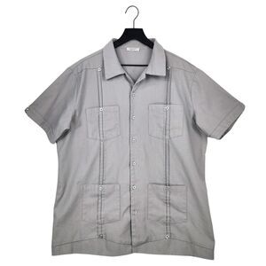 Coofandy Mens XL Linen Blend Cuban Guayabera Button Shirt Short Sleeve Pockets