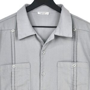 Coofandy Men's XL Linen Blend Cuban Guayabera Button Shirt Short Sleeve Pockets