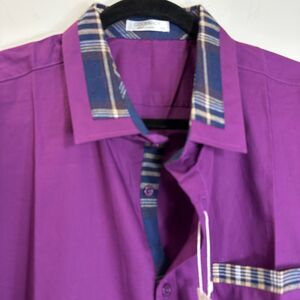Coofandy Shirt Mens Sz XXL Purple w/Plaid Trim Button Up Cotton Blend Short SL