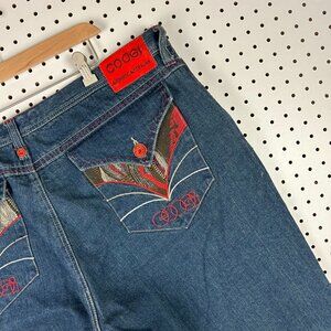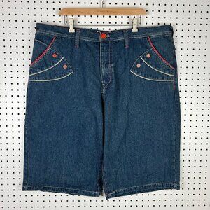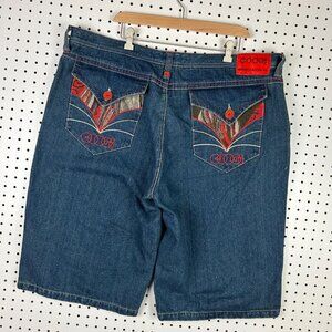 Coogi 90s Baggy Jean Shorts Size 42 Embroidered Stitched Red Pockets Hip Hop