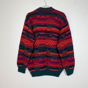Coogi Australia 3D Knit Sweater Men's M Mock High Neck Green Orange Red Brown