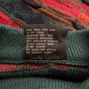 Coogi Australia 3D Knit Sweater with high neck in green, orange, red, brown,