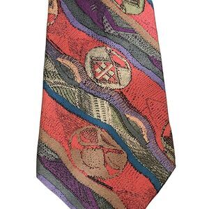 Add a statement of personality and fashion taste to your wardrobe with this Coogi Australia Necktie Set. The set comes with two unique pieces, each featuring a colorful, abstract pattern inspired by the iconic Coogi Sweater. Made of 100% silk, these ties are not only stylish but also comfortable to wear. The classic width and tied attachment type make them suitable for any occasion.