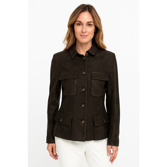 Stand out with bold, streetwear-meets-luxury styling in this Coogi Australia camo leather blazer. Crafted from 100% genuine leather with a distinctive camouflage print, this statement jacket features classic tailoring with modern edge. Designed with a structured silhouette, button front closure, flap pockets, and a sharp pointed collar, it’s fully lined with silky viscose for elevated comfort. A rare piece from the iconic Australian brand known for maximalist flair and premium craftsmanship.