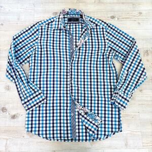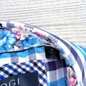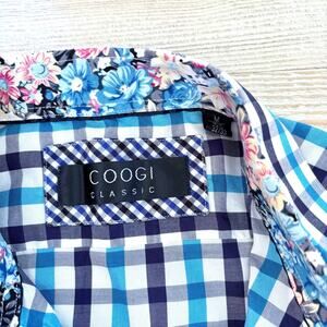Coogi Classic Gingham Floral Button Down Shirt | Blue Medium 15.5 32/33