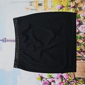 This elegant black skirt features intricate studded detailing, perfect for adding a touch of sophistication to any outfit. Very Stretchy