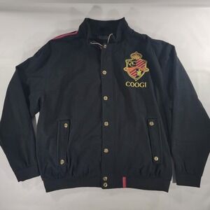 Coogi Embroidered Varsity Bomber Jacket Men's Size 4XL Black Denim Button Zip. Excellent Used Condition