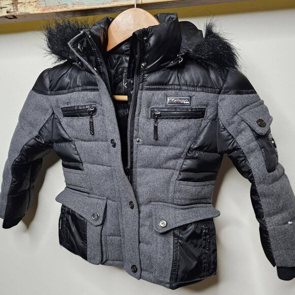 Coogi Gray/Black Wool Blend Hooded Girls Peacoat size 4