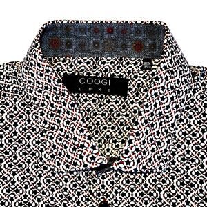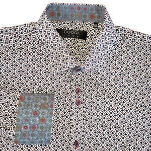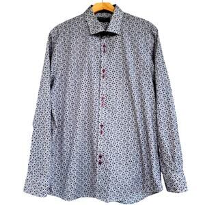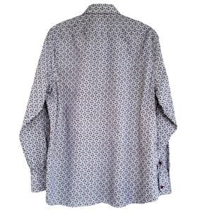 Coogi Luxe Cotton Geometric Print Button Up Flip Cuff Shirt Men 2XL White Multi