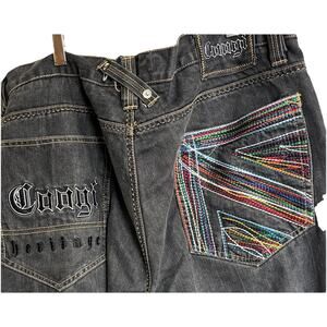Coogi Men Jean Black Sz 42/35 Embroidered Grunge Goth Skater Punkcore Gothrock