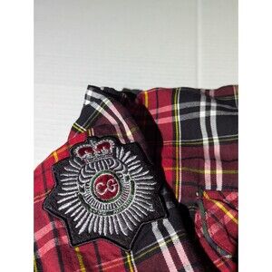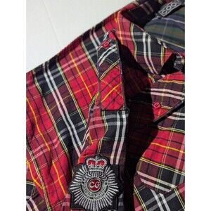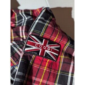 Coogi Mens Button Down Shirt Plaid Union Jack Patches Long Sleeve Pockets XXXL