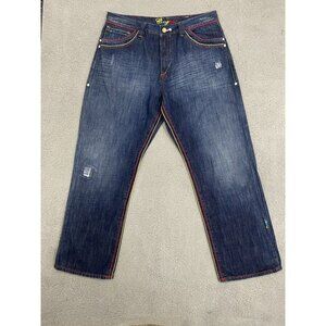 Coogi Mens Denim Jeans W40 L34 Rainbow Stitching Blue
