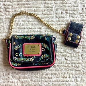 Coogi Mini Bag Chain Wristlet Clutch Vintage Australia Rainbow Logo Black Pink lining. Good condition. Cute mini bag with chain and wrist cuff. Approximately 7” x 5” x 1”