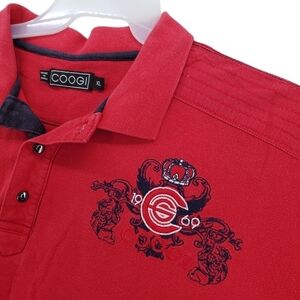 Coogi Polo Shirt Men XL SS Pullover Embellished Crest Logo Bling 100% Cotton Red