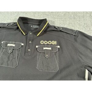 Coogi Polo Shirt Mens XXXXL Black Short Sleeve White Gold Trim Chest Pockets 4XL