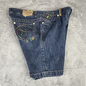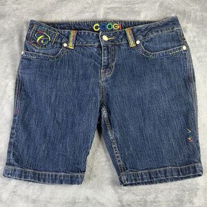 Coogi Shorts Women 18 Jean Embroidered Cotton Stretch Denim Colorful Rainbow 36"